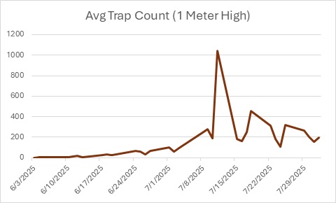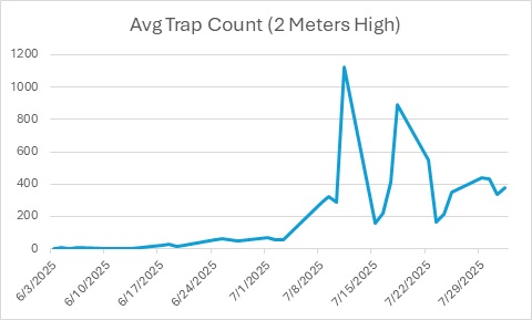 During the summer of 2025, MSU Mosquito Lab will be monitoring mosquito populations throughout the towns of Mayville and Portland, North Dakota. While we will still be providing average trap count numbers, we will additionally be investigating the feeding behavior of local mosquito species based upon height.